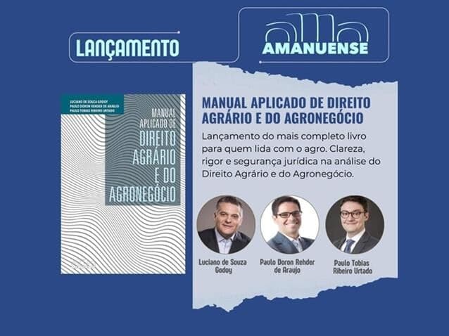 23.jan.2026Novo "Manual Aplicado de Direito Agrário" é lançado em SPA obra, que foca na segurança jurídica e nos desafios do agronegócio moderno, foi escrita por Luciano de Souza Godoy, Paulo Doron Rehder de Araujo e Paulo Tobias Ribeiro Urtado.