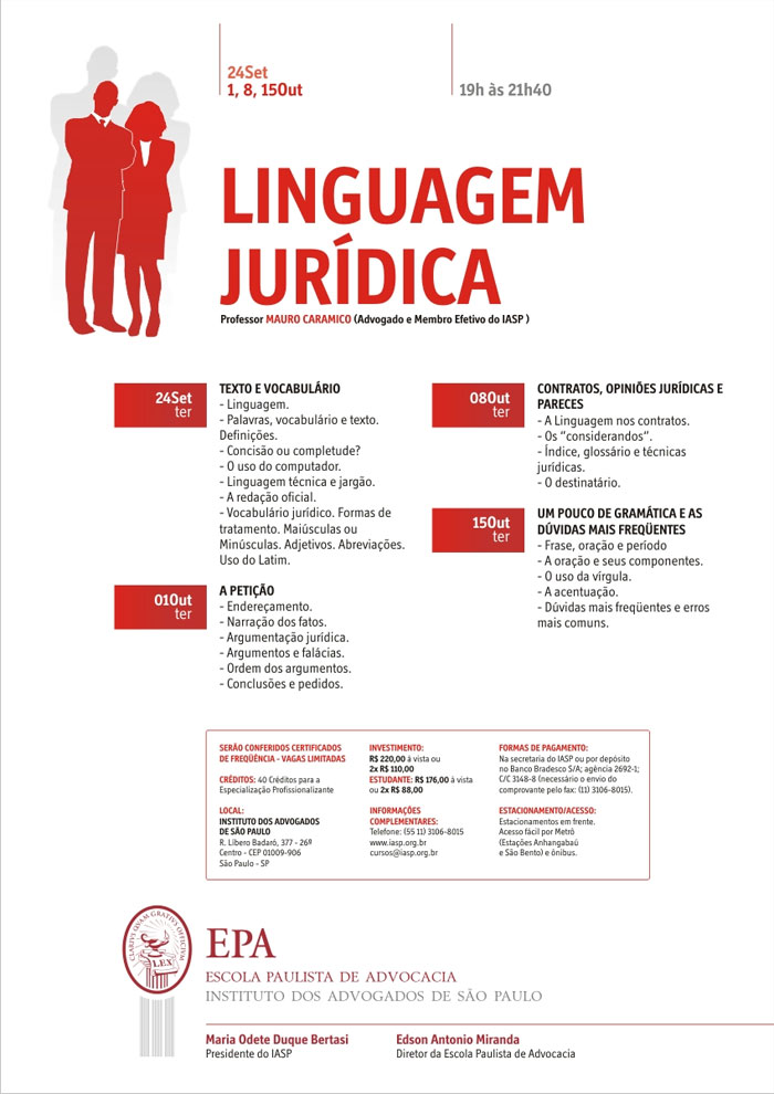 Local: Instituto dos Advogados de São Paulo - Rua Líbero Badaró, 377 - Centro - SP