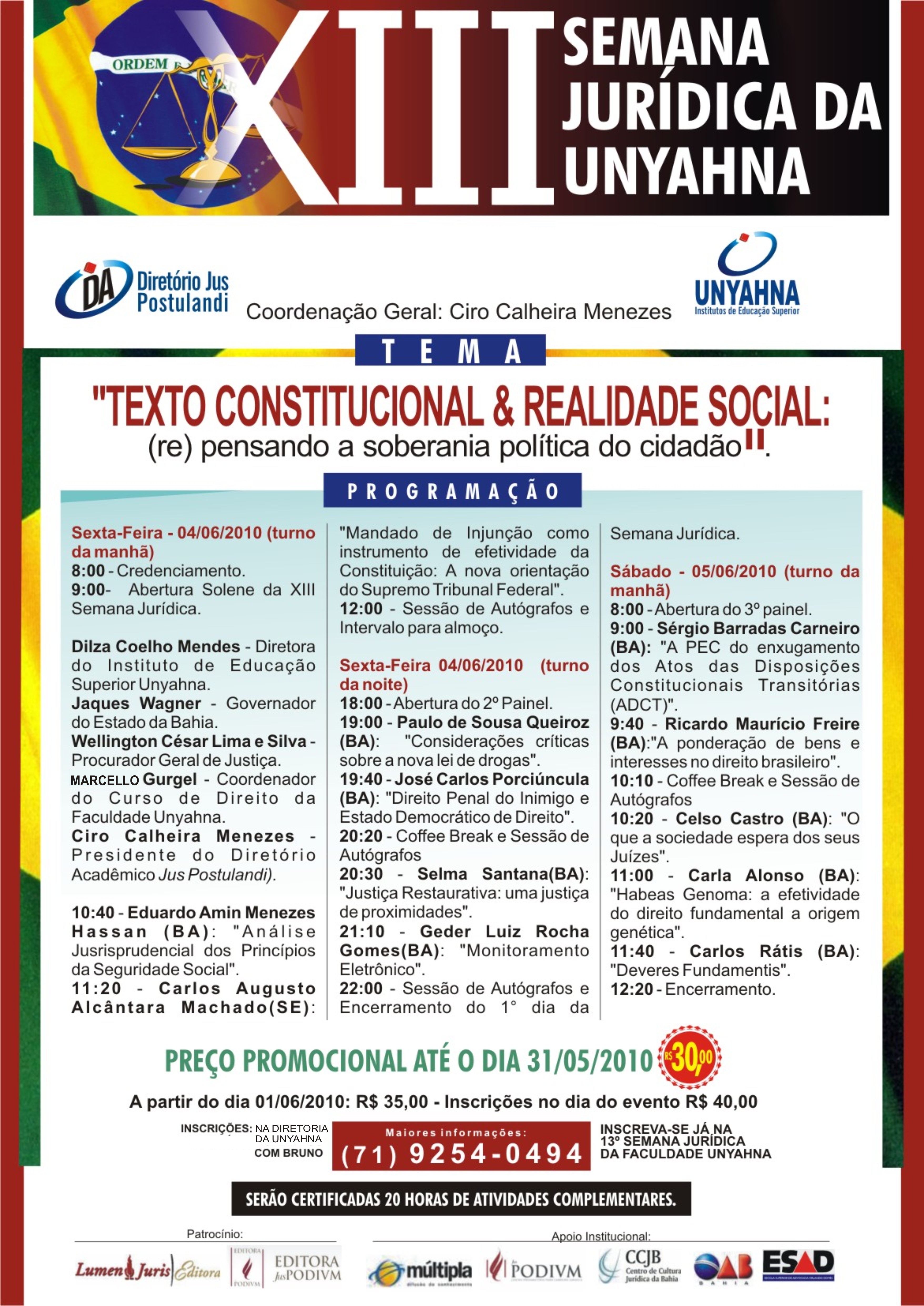 Grandes nomes do meio jurídico estarão reunidos em SP, nos dias 10 e 11/6, para a 30° edição do "Congresso Brasileiro de Direito Constitucional", promovido pelo Instituto Brasileiro de Direito Constitucional - IBDC, que tem como presidente o ilustre advogado Roberto Rosas. O evento deste ano abordará o tema "Um planeta sem fronteiras: soberania e meio ambiente no século XXI". Concorra a vagas-cortesia. (Clique aqui)