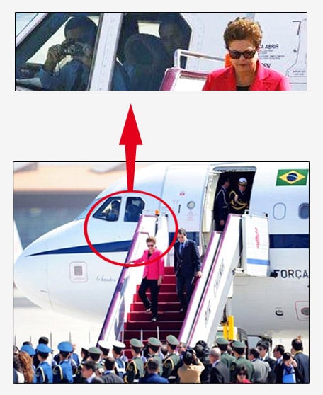 Hoje pela manhã, na China, quando Dilma desceu do AeroLula, o piloto da aeronave protagonizou uma cena ridícula. Diante do cerimonial diplomático chinês, Dilma desceu as escadas e o comandante tupiniquim, como um tiete, ficou tirando fotos a partir da cabine. Veja : clique aqui.