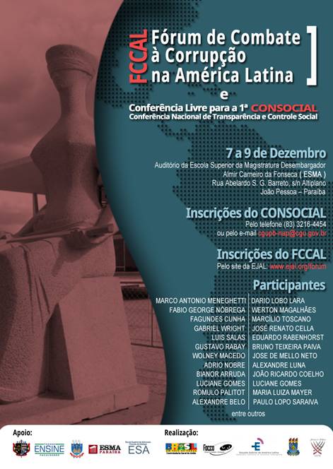 De 7 a 9/12, acontece o "Fórum de Combate à Corrupção na América Latina", em João Pessoa/PB. (Clique aqui)