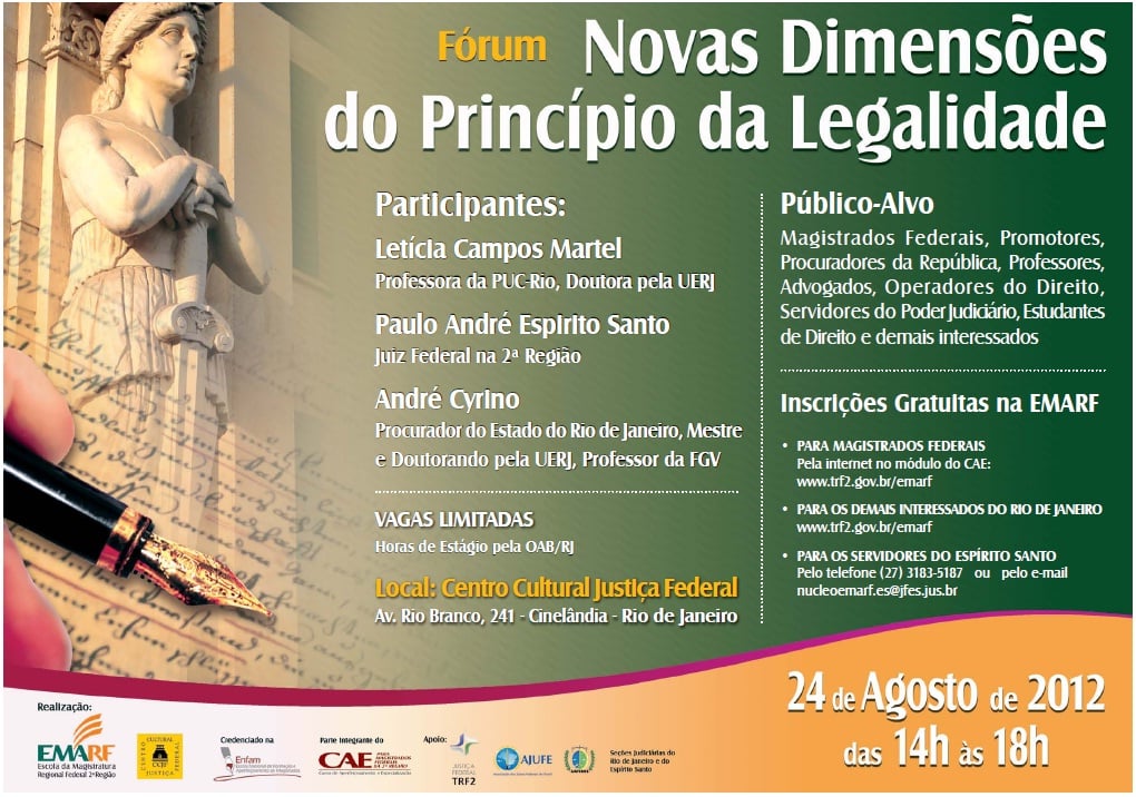 André Cyrino, do escritório Binenbojm, Gama & Carvalho Britto Advocacia, participará do "Fórum Novas Dimensões do Princípio da Legalidade", no dia 24/8, no RJ. (Clique aqui)