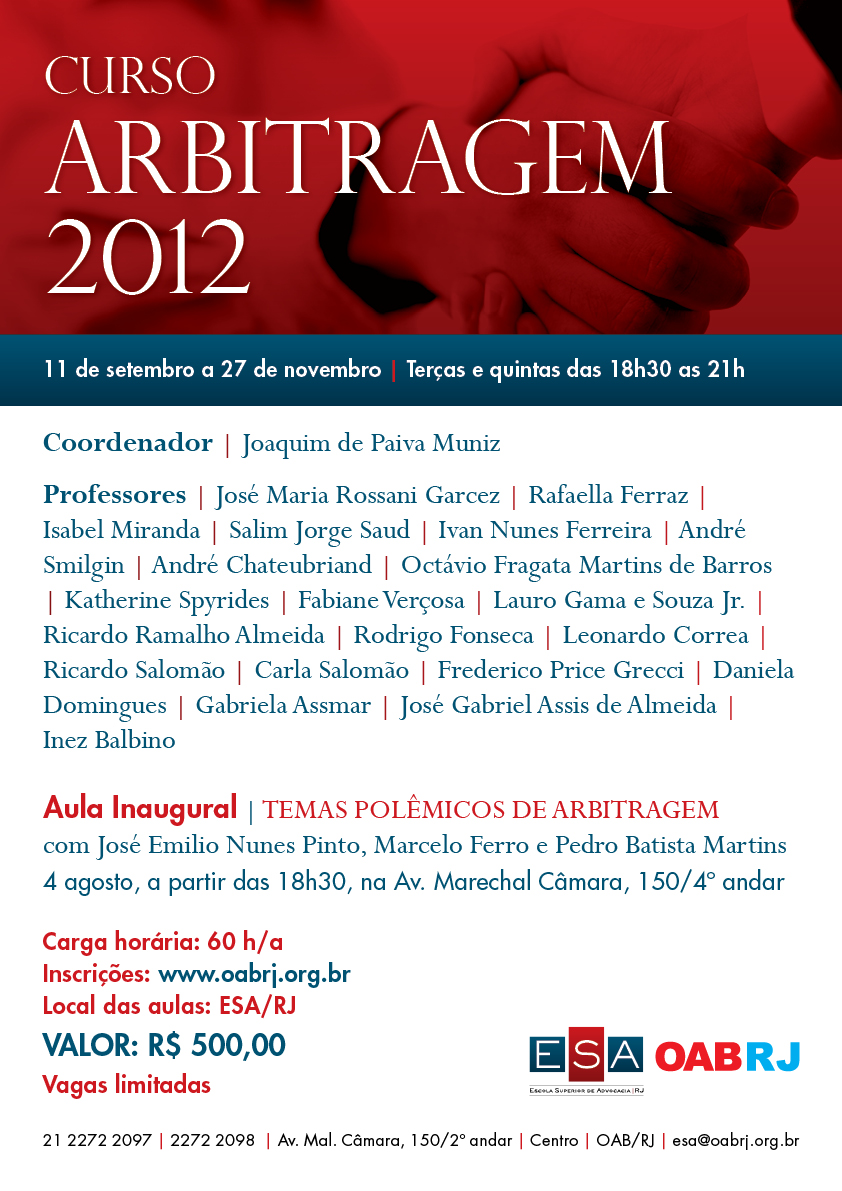 Uma comissão especial de seis juristas, presidida pelo ministro Luís Felipe Salomão, do STJ, vai elaborar uma proposta de atualização da lei de arbitragem. Integram a comissão os advogados Marcelo Nobre, Caio Cesar Rocha, José Rogério Cruz, Francisco Antunes Maciel Müssnich e Tatiana Lacerda Prazeres. (Clique aqui)