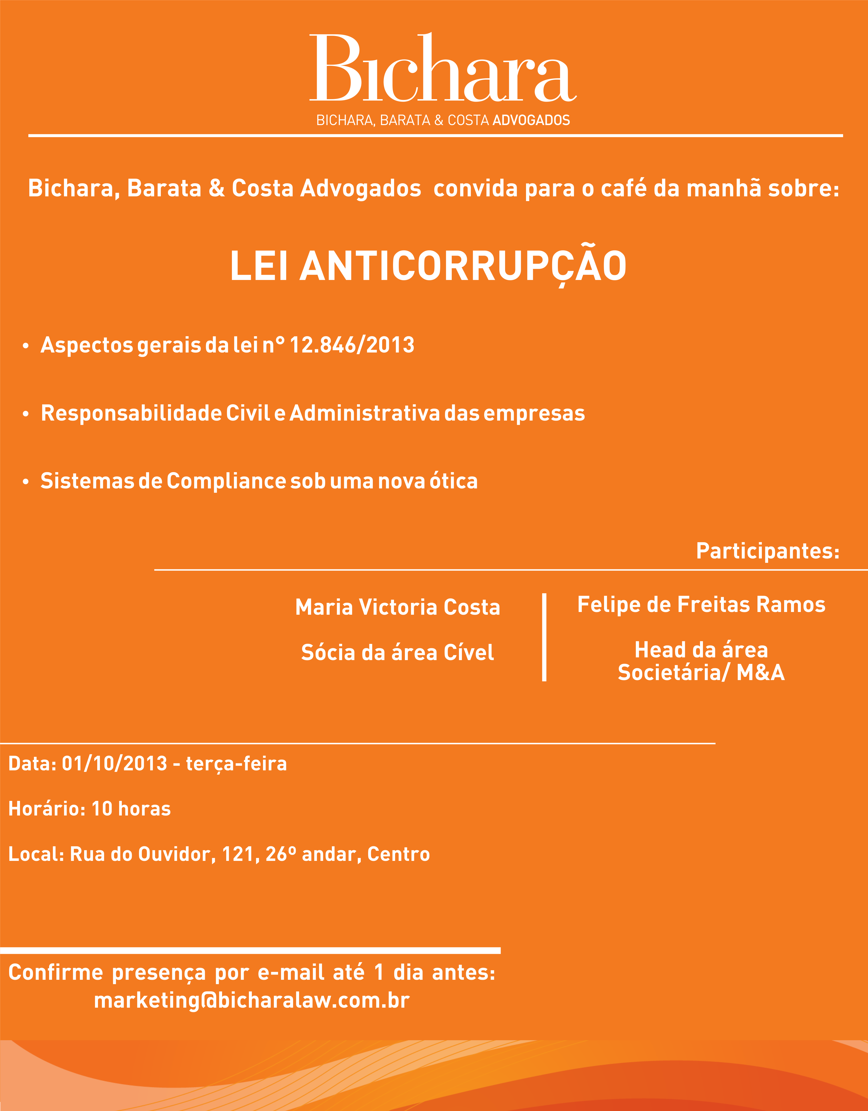 Em agosto foi promulgada a lei 12.846/13, conhecida como lei anticorrupção. O advogado Ricardo Franceschini, do escritório Martorelli Advogados, dá dicas de práticas que as empresas podem adotar para mitigar os riscos de corrupção, como : uso de código de ética, canal de denúncias, desenvolvimento de controles internos e criação de um conselho de ética. (Clique aqui)