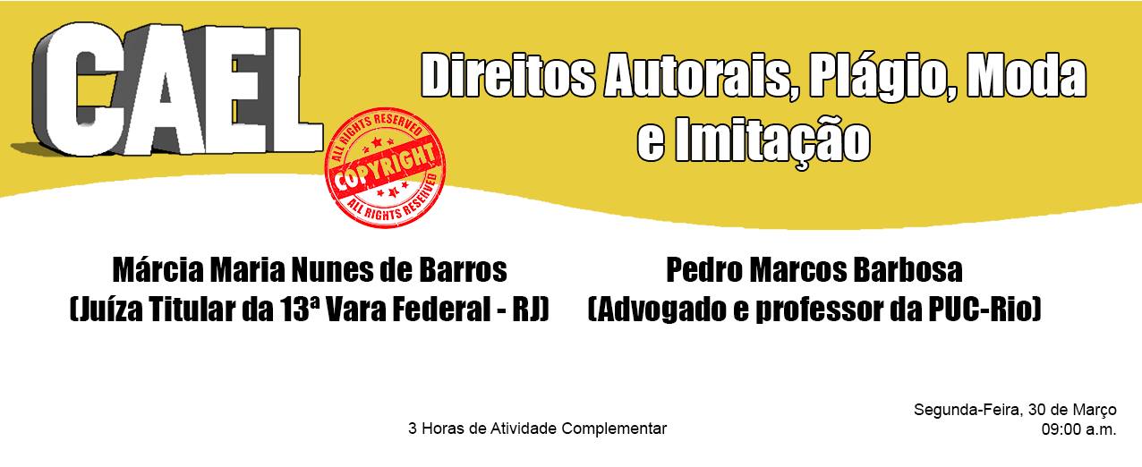 No dia 30/3, às 9h, Pedro Marcos Nunes Barbosa, do escritório Denis Borges Barbosa Advogados, palestrará na PUC-Rio sobre "Direitos Autorais, Plágio, Moda e Imitação". (Clique aqui)