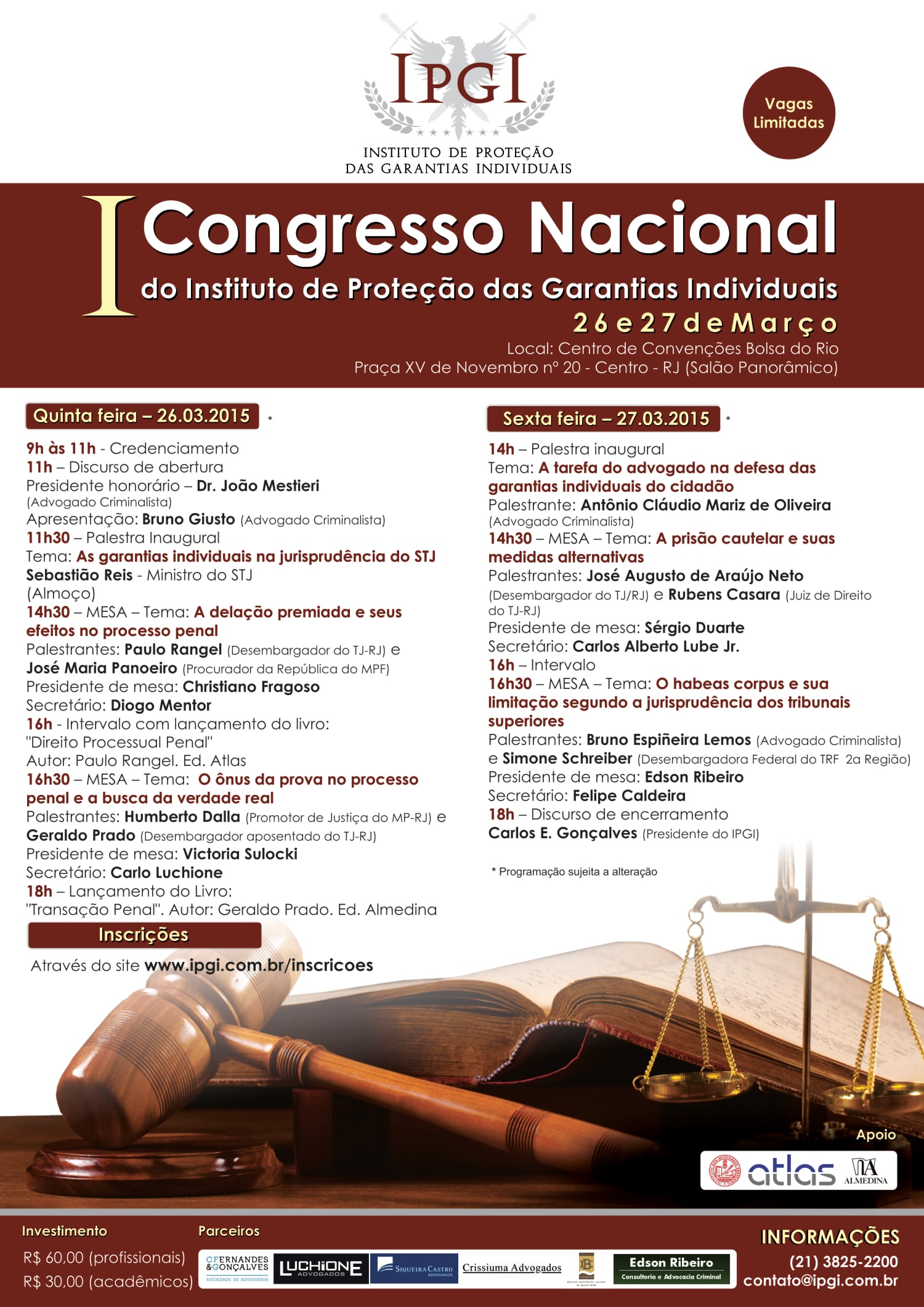 Amanhã, com a participação de diversos expoentes do Direito Penal e Processual Penal contemporâneo e democrático, será lançada, no RJ, a obra "Transação Penal", de Geraldo Prado. O evento será no Centro de Convenções Bolsa do Rio (praça XV de Novembro, 20), às 18h.