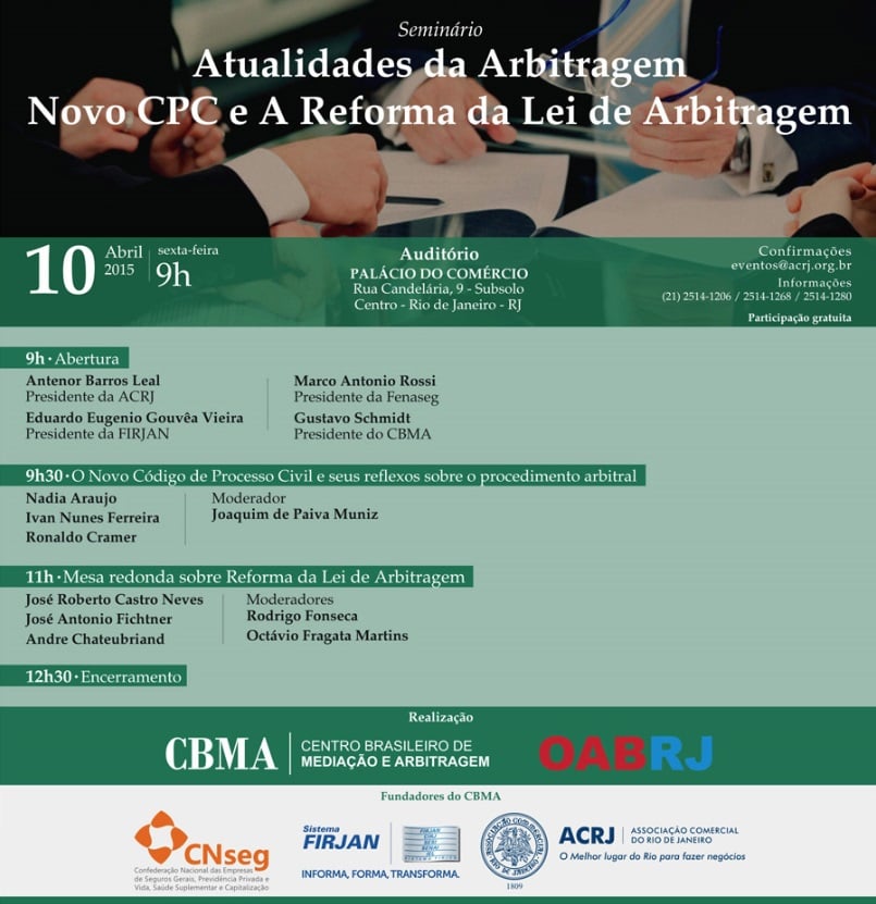 Com o propósito de discutir as práticas do novo texto, o seminário "Novo CPC - Aspectos Práticos", acontece dia 13 de abril, das 9 às 18h, no Hotel Tivoli São Paulo - Mofarrej. Últimas vagas. Inscreva-se ! (Clique aqui)