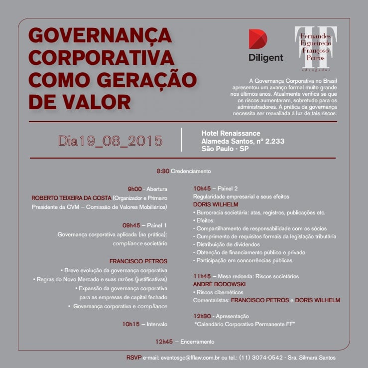 Gustavo Fernandes, sócio especialista em Arbitragem do Tauil & Chequer Advogados, participa hoje do "IX Seminário de Arbitragem e Mediação", no painel "Os Árbitros perante as Partes e a Instituição Arbitral". O evento acontece das 9 às 18h, no Hotel Meliá, em SP.