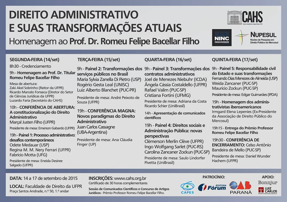 A obra "Compêndio de Direito da Concorrência: Temas de Fronteira", organizada por Elvino de Carvalho Mendonça, Fábio Luiz Gomes e Rachel Pinheiro de Andrade Mendonça, será lançada pela Editora Migalhas no dia 29/9, em SP. Contando com a participação de nomes de peso do cenário nacional, o livro consolida importante instrumento para renovar e ampliar a compreensão a respeito dos temas de defesa da concorrência no Brasil. O evento acontece na Livraria da Vila do JK Iguatemi (av. Pres. Juscelino Kubitschek, 2.041, Itaim Bibi), a partir das 18h30. (Clique aqui)