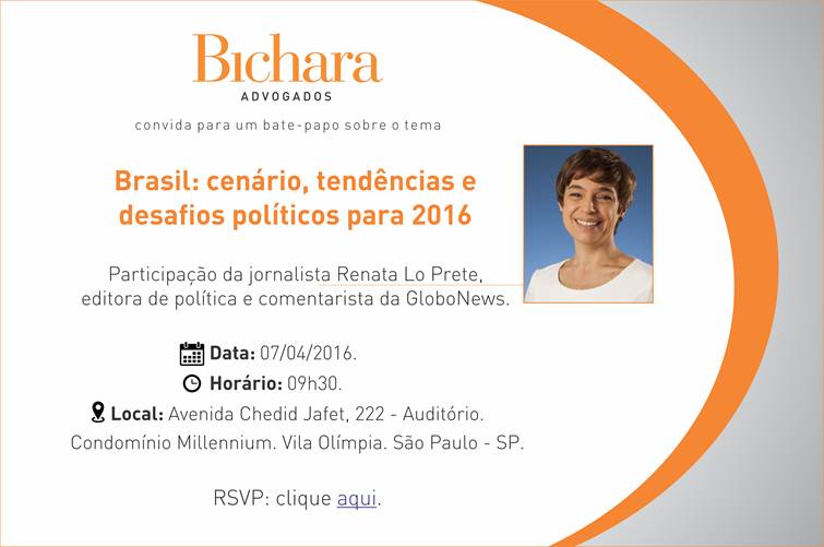 Segunda-feira, 11 de abril, Hotel Tivoli São Paulo - Mofarrej - "Repatriação de Recursos : Regras, Benefícios e Desafios da Regularização de Ativos". (Clique aqui)