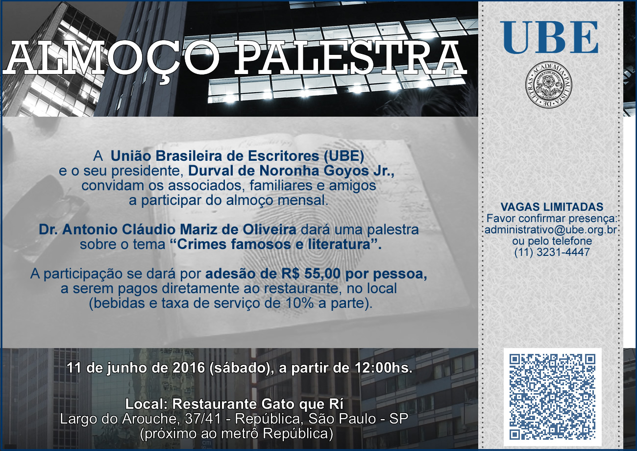 No dia 11/6, Antonio Cláudio Mariz de Oliveira, da Advocacia Mariz de Oliveira, palestra sobre "Crimes famosos e literatura", em SP. (Clique aqui)