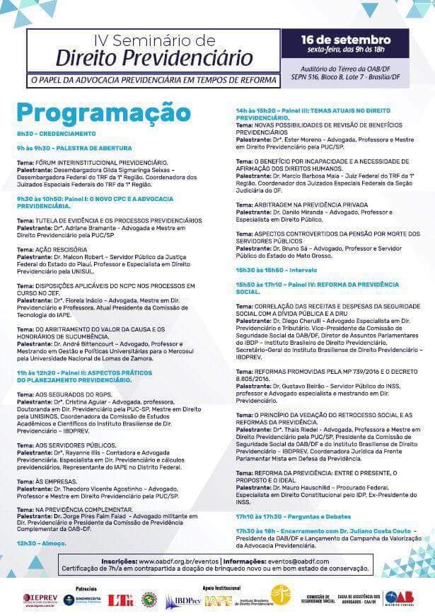 Hoje, Fiorella Inácio, advogada do IAPE - Instituto dos Advogados Previdenciários - Conselho Federal, dará a palestra "Disposições Aplicáveis do NCPC nos processos em curso no JEF", durante o "IV Seminário de Direito Previdenciário", em Brasília. (Clique aqui)