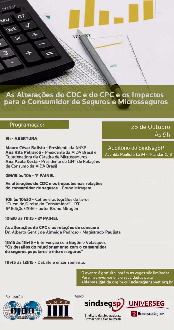 No dia 25/10, Ana Rita Petraroli, da banca Petraroli Advogados Associados, participa da abertura do evento "As alterações do CDC e do CPC e os Impactos para o Consumidor de Seguros e Microsseguros", às 9h, em SP. As vagas são gratuitas e limitadas. (Clique aqui)
