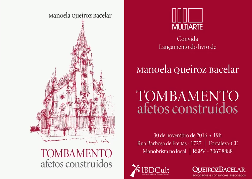 No próximo dia 30 será lançado o livro "Tombamento - afetos construídos", de Manoela Queiroz Bacelar. O evento será em Fortaleza/CE, na Galeria Multiarte (rua Barbosa de Freitas, 1.737), às 19h. (Clique aqui)