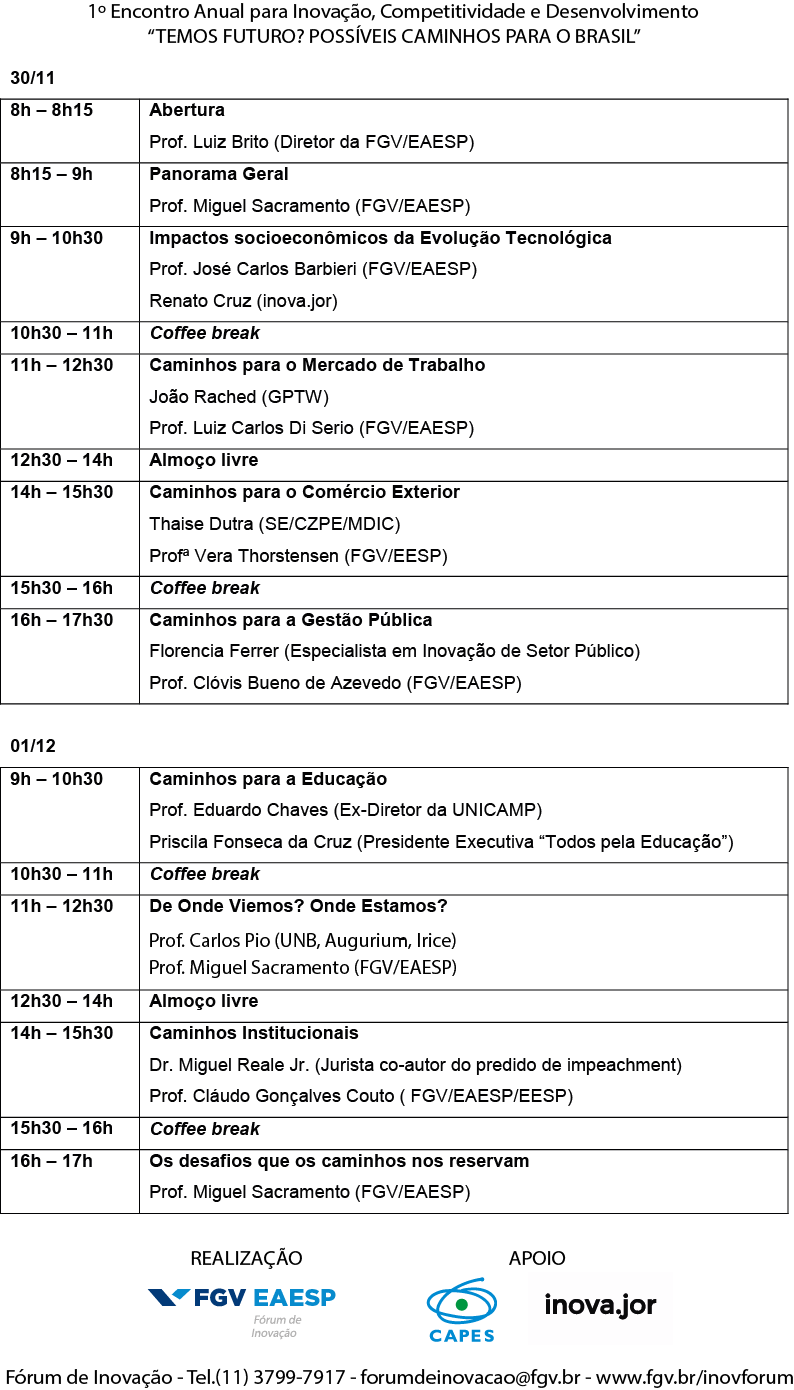No próximo dia 1º, Miguel Reale Júnior, da banca Miguel Reale Júnior Sociedade de Advogados, palestra sobre "Caminhos Institucionais", das 14 às 15h30, durante o "1º Encontro Anual para Inovação, Competitividade e Desenvolvimento", que terá como tema "Temos futuro ? possíveis caminhos para o Brasil", em SP. (Clique aqui)