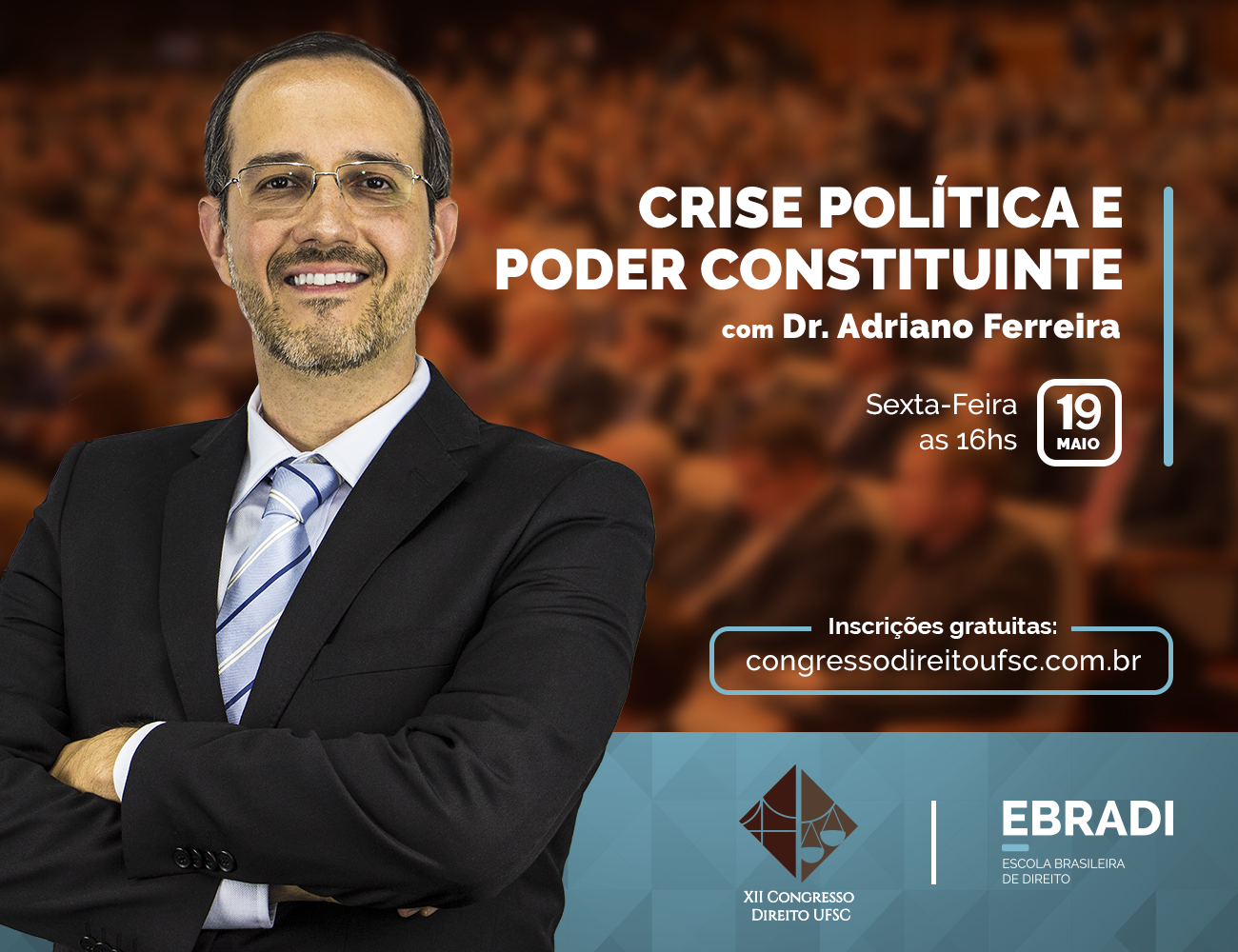 Amanhã, às 16h, Adriano Ferreira, professor da EBRADI - Escola Brasileira de Direito, palestra sobre "Crise Política e Poder Constituinte", durante o "XII Congresso Direito UFSC", em Florianópolis/SC (clique aqui). (Clique aqui)