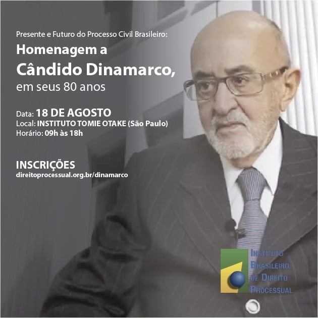 Seminário organizado pelo IBDP em homenagem a Cândido Rangel Dinamarco, do escritório Dinamarco, Rossi, Beraldo & Bedaque Advocacia, acontece em SP, no dia 18/8. (Clique aqui)