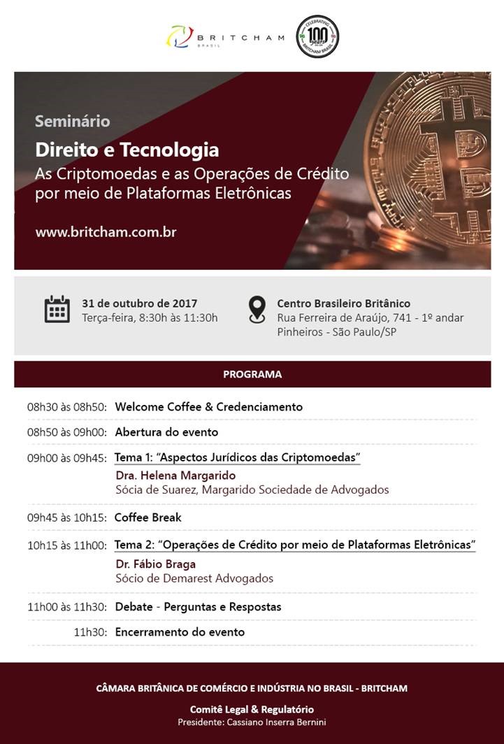 Fábio Braga, de Demarest Advogados, apresenta a palestra "Operações de Crédito por meio de Plataformas Eletrônicas", no seminário "Direito e Tecnologia - As Criptomoedas e as Operações de Crédito por meio de Plataformas Eletrônicas". Em SP, dia 31/10. (Clique aqui)