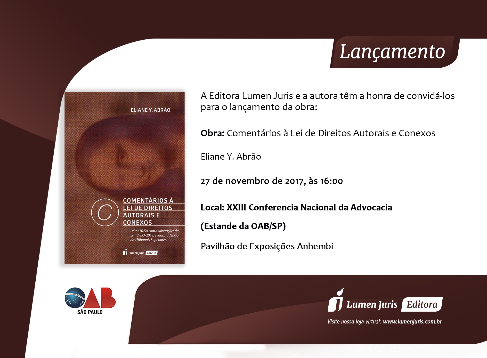 Será lançado no próximo dia 28 de novembro, às 9h, no stand da OAB/SP, na XXIII Conferência Nacional da Advocacia Brasileira, o primoroso trabalho editorial "OAB SP 85 anos: O nascimento das primeiras 28 subseções". Compareça! (Clique aqui)