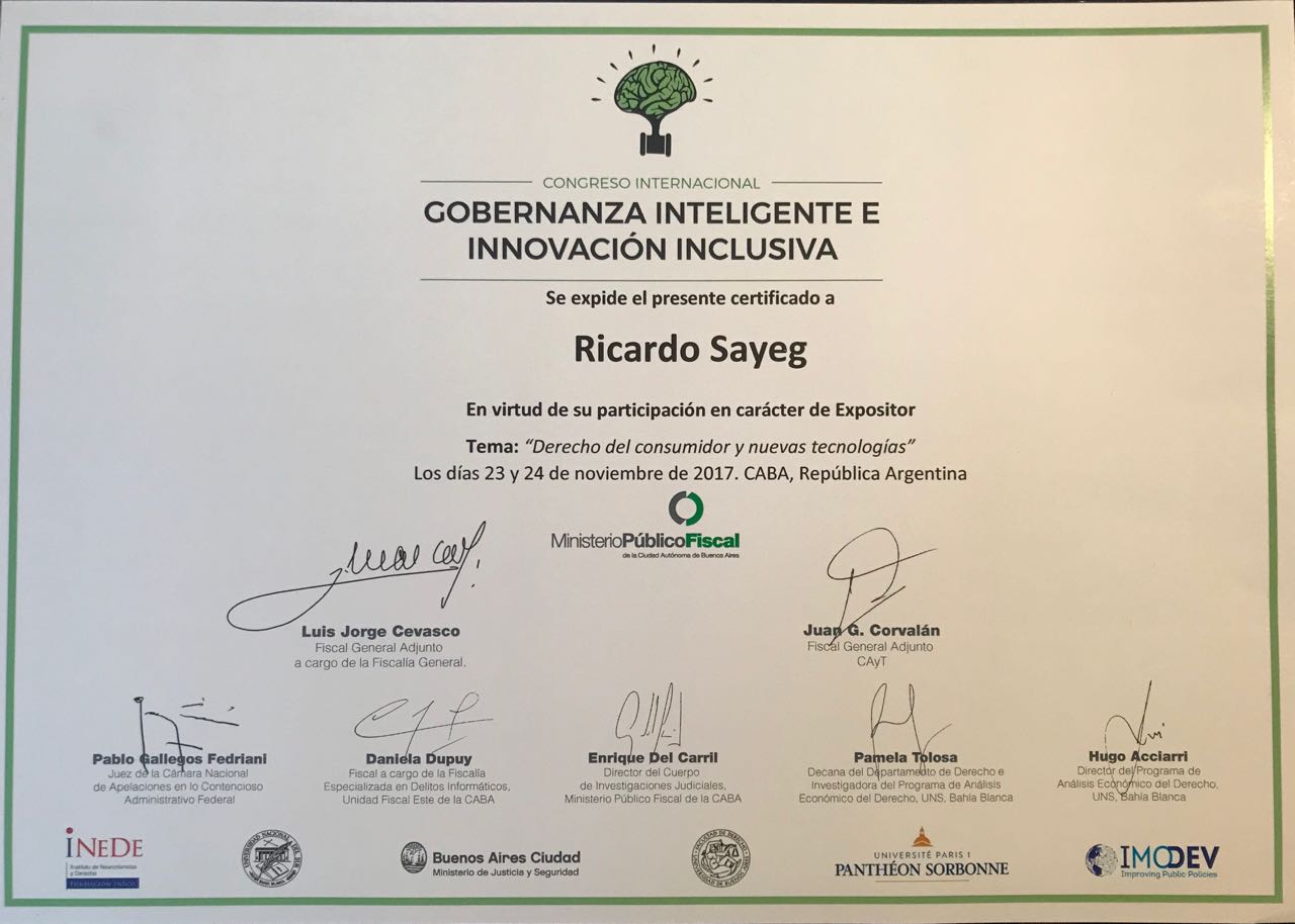 O "Congreso Internacional Gobernanza Inteligente e Innovación Inclusiva", que aconteceu dias 23 e 24/11, em Buenos Aires, contou com a participação de Ricardo Hasson Sayeg, do HSLAW. (Clique aqui)