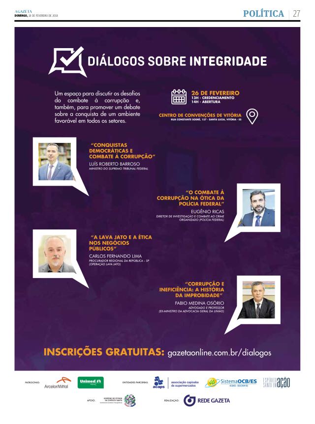 Segunda-feira, 19 de fevereiro de 2018 - Migalhas nº 4.298 - Fechamento às 9h47.