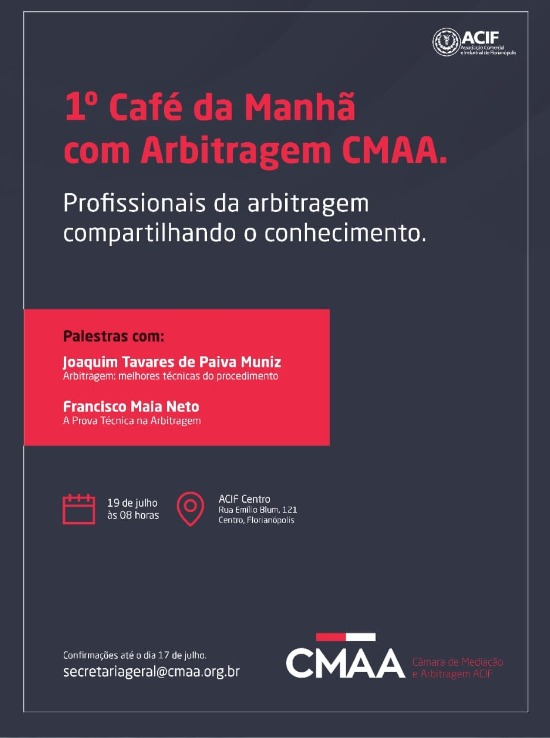 Sócio de Trench Rossi Watanabe, Joaquim de Paiva Muniz será palestrante no "1º Café da manhã com Arbitragem CMAA", dia 19/7, em Florianópolis/SC. (Clique aqui)