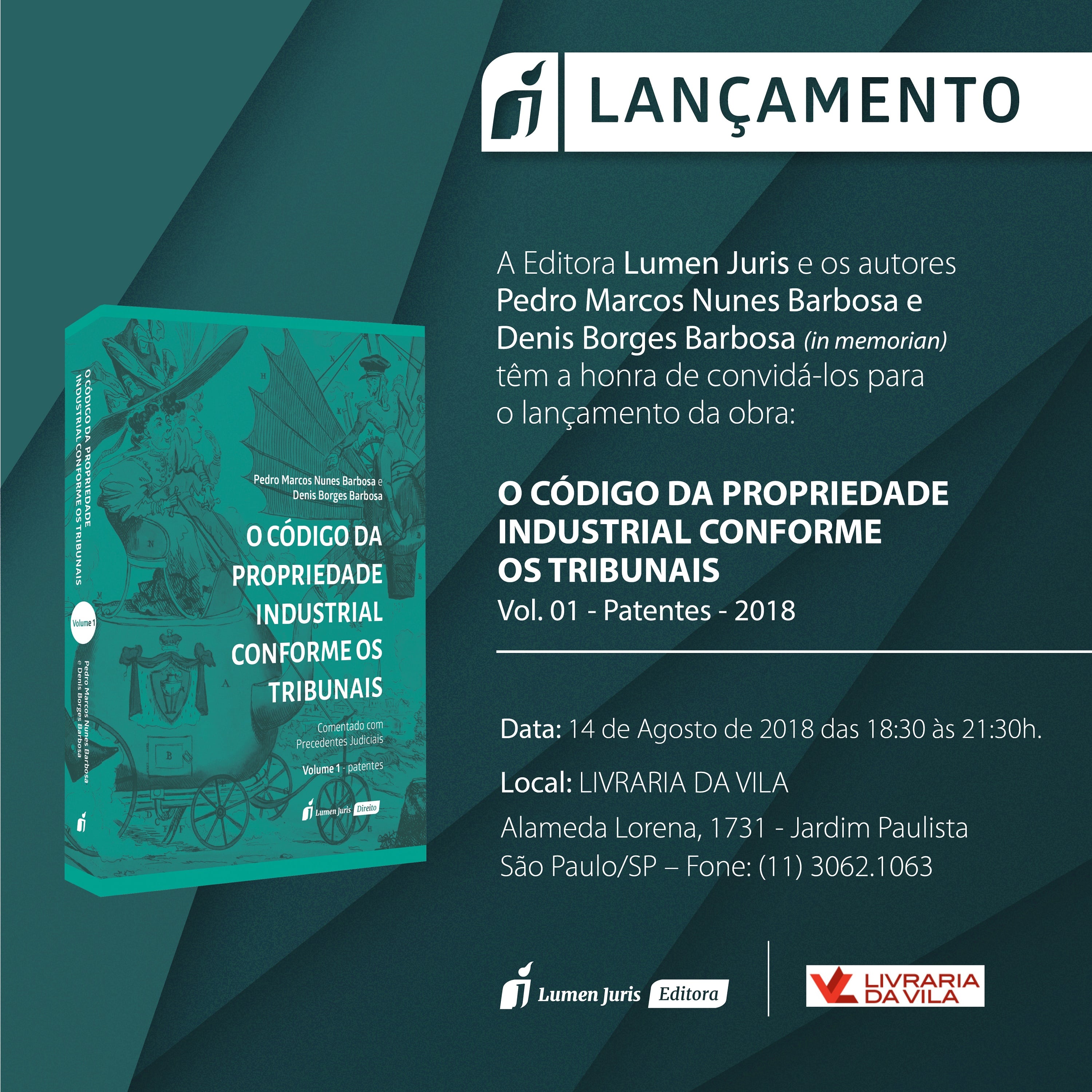 Advogado Pedro Marcos Nunes Barbosa, sócio do escritório Denis Borges Barbosa Advogados, lança, amanhã, o livro "O Código da Propriedade Intelectual conforme os Tribunais - Vol. 01 - Patentes" (Lumen Juris). O Código comentado tem como coautor o professor Denis Borges Barbosa (in memorian). O evento será em SP, na Livraria da Vila, das 18 às 21h30. (Clique aqui)