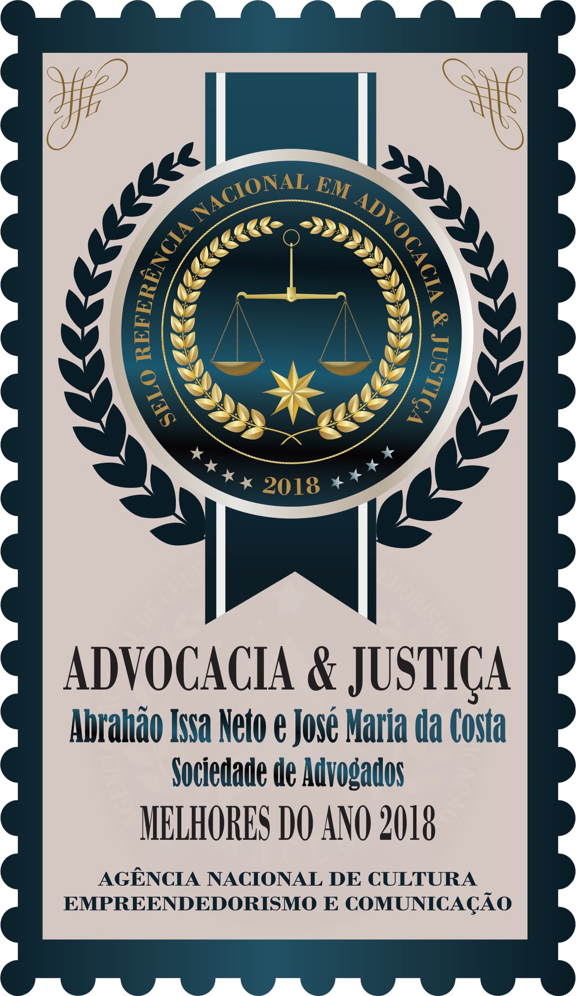 A banca Abrahão Issa Neto e José Maria da Costa Sociedade de Advogados acaba de conquistar o selo "Referência Nacional em Advocacia". A indicação é realizada pelos membros associados da ANCEC - Agência Nacional de Cultura, Empreendedorismo e Comunicação, composto por empresários, autoridades, advogados, artistas, esportistas, jornalistas que já foram homenageados em todo território nacional. (Clique aqui)