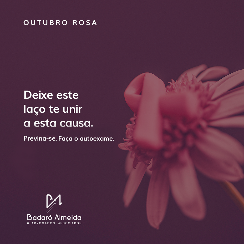 o escritório Badaró Almeida & Advogados Associados apoia o Outubro Rosa, mês dedicado à prevenção e conscientização do câncer de mama. (Clique aqui)