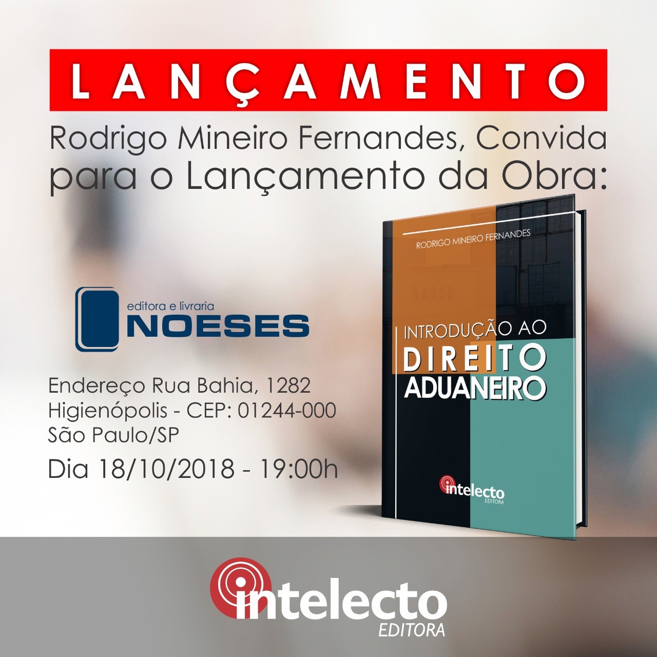 Será lançado no próximo dia 18 o livro "Introdução ao Direito Aduaneiro" (Intelecto), de Rodrigo Mineiro Fernandes. O evento será em SP, na Editora Noeses (rua Bahia, 1.282), às 19h. (Clique aqui)