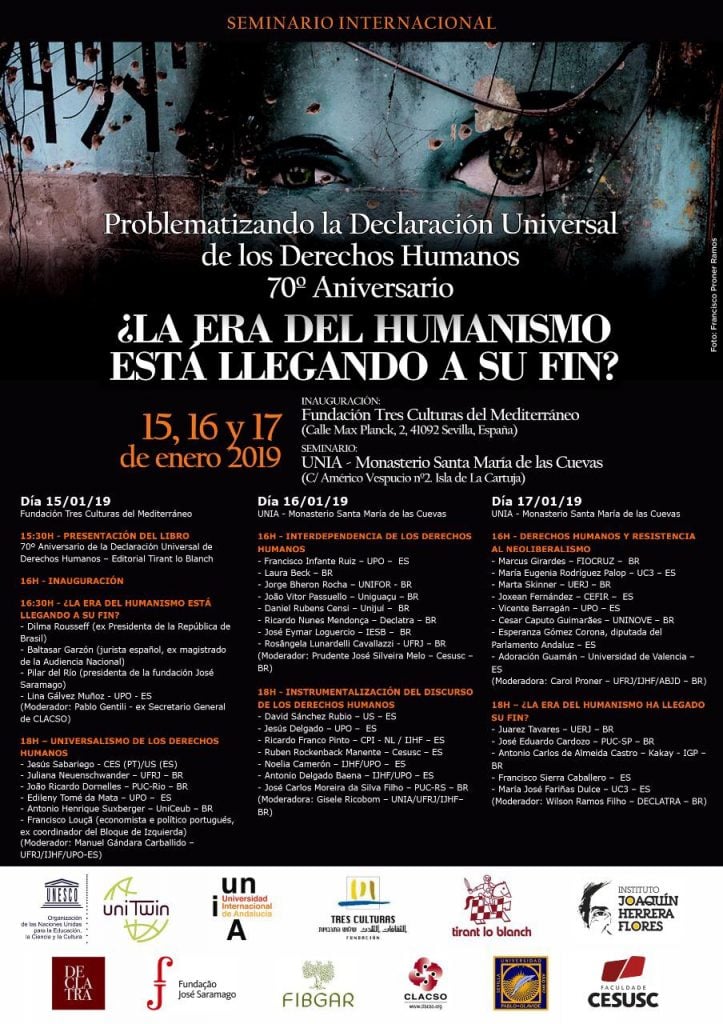 A partir de questionamento do filósofo Achille Mbembe, intelectuais latino-americanos e europeus se reunirão em Sevilha, Espanha, para debater os direitos humanos. O seminário "¿La era del Humanismo está llegando a su fin?" será realizado amanhã, 16 e 17/1. Confira a programação. (Clique aqui)