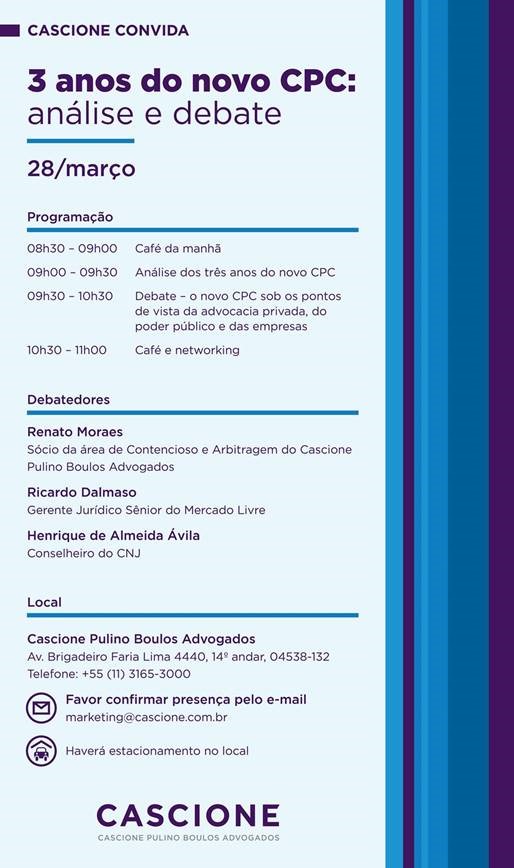 No dia 30/3, às 9h30, a Faculdade de Direito de São Bernardo do Campo sediará o "5º Encontro sobre Direito Civil". O tema deste ano será "Planejamento Familiar: Igualdade de Gênero e Corresponsabilidade", com a advogada Denise Almeida de Andrade. (Clique aqui)