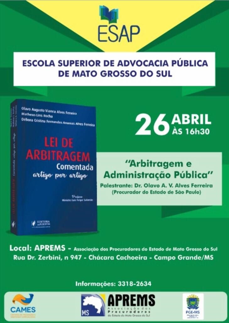 Será lançado no próximo dia 26 o livro "Lei de Arbitragem Comentada Artigo por Artigo" (JusPodivm), de Olavo Augusto Vianna Alves Ferreira, Matheus Lins Rocha e Débora Cristina Fernandes Ananias Alves Ferreira. O evento será em Campo Grande/MS, na APREMS, às 16h30. (Clique aqui)