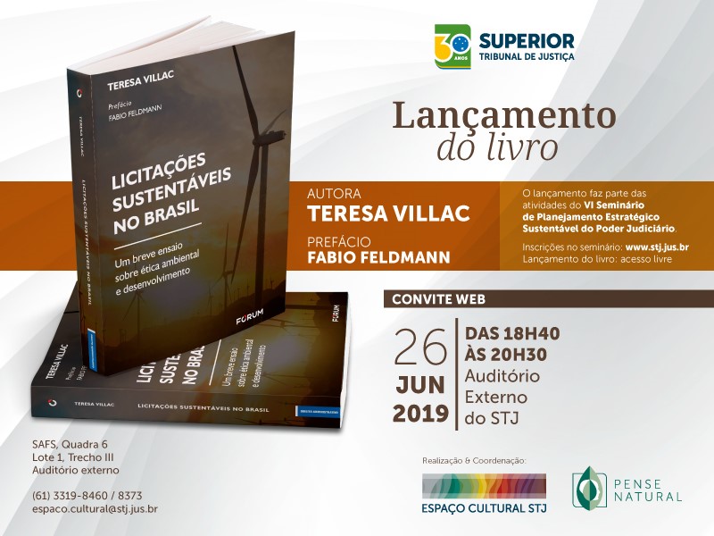 No próximo dia 26 será lançada a obra "Licitações Sustentáveis no Brasil", de Teresa Villac. O evento será em Brasília, no auditório externo do STJ, das 18h40 às 20h30. (Clique aqui)