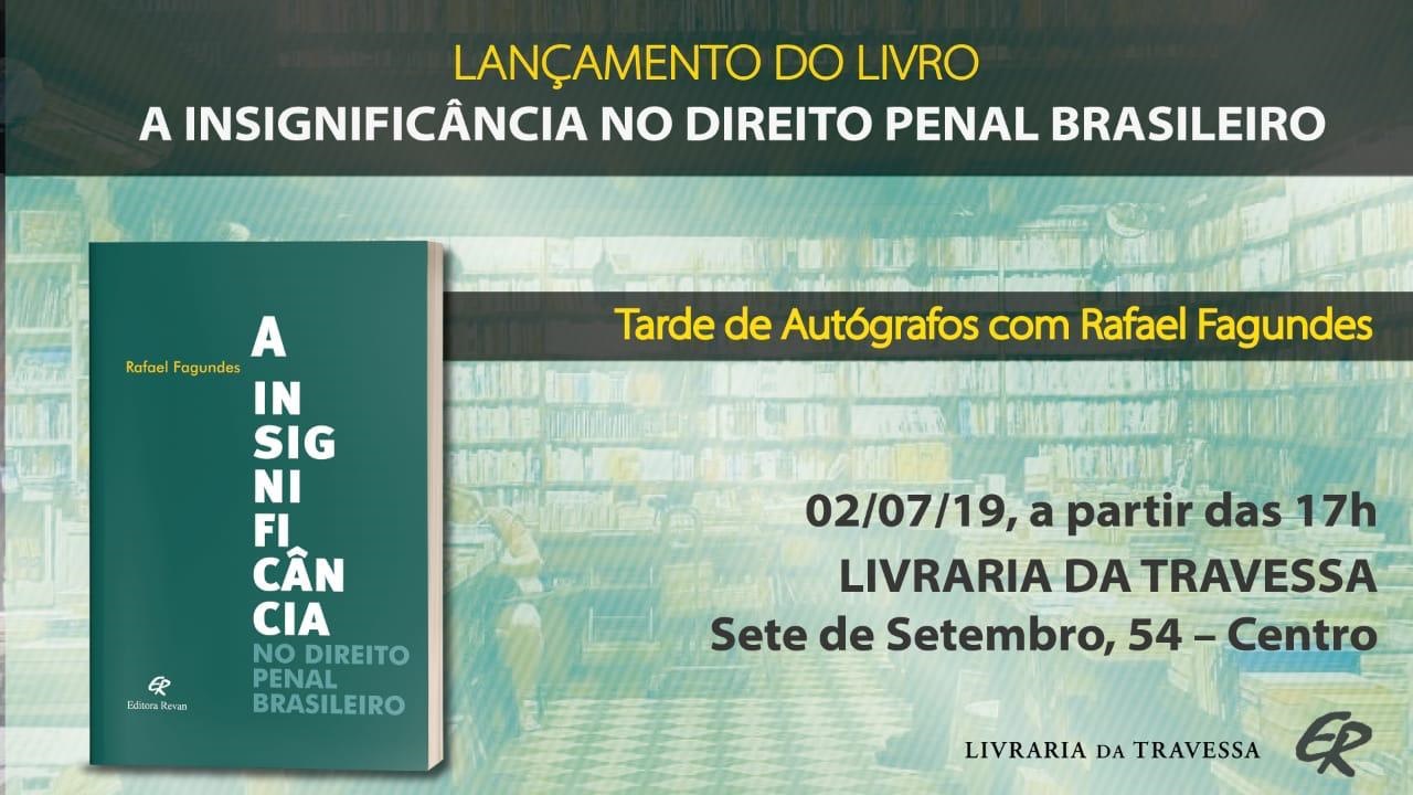 No próximo dia 2, o advogado Rafael Fagundes, do escritório Nilo Batista e Advogados Associados, lança a obra "A Insignificância no Direito Penal Brasileiro". O evento será no RJ, na Livraria da Travessa, a partir das 17h. (Clique aqui)