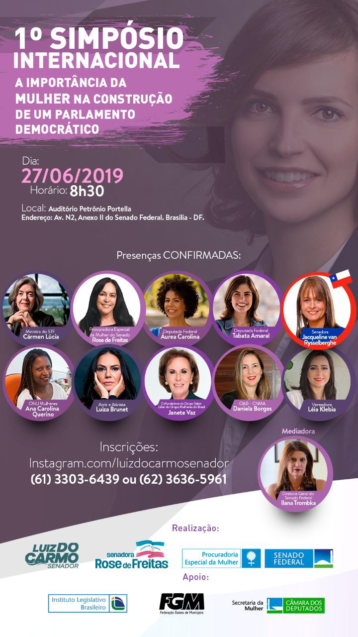 Amanhã, às 8h30, em Brasília, acontece o "1º Simpósio Internacional - A Importância da Mulher na Construção de um Parlamento Democrático". Inscreva-se. (Clique aqui)