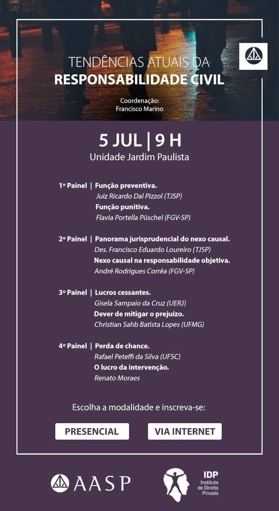 Sócio da área de Arbitragem e Contratos do escritório Vilas Boas Lopes e Frattari Advogados e professor de Direto Civil da UFMG, Christian Lopes apresenta palestra no evento "Tendências Atuais da Responsabilidade Civil". Dia 5/7, em SP. A o evento é promovido pela AASP e pelo IDP. (Clique aqui)