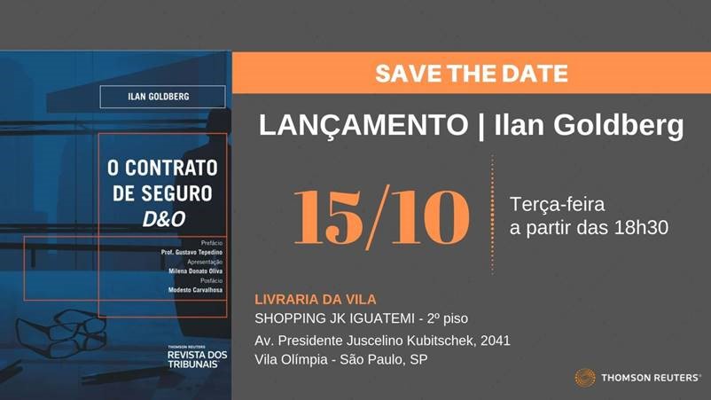 No próximo dia 15, o advogado Ilan Goldberg, sócio do escritório Chalfin, Goldberg, Vainboim & Fichtner Advogados Associados, lança a obra "O Contrato de Seguro D&O". O evento será em SP, na Livraria da Vila do Shopping JK Iguatemi, a partir das 18h30. (Clique aqui)