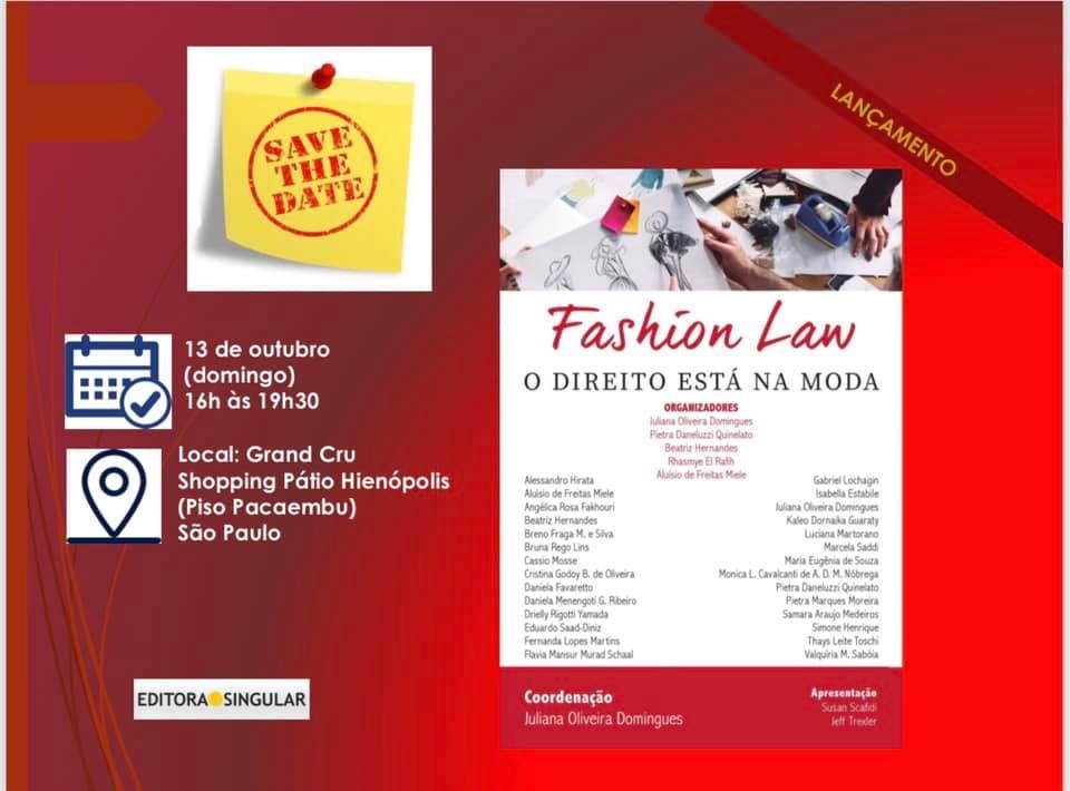 O escritório Madrona Advogados convida para o lançamento do livro "Fashion Law: O Direito está na Moda", coordenado por Juliana Oliveira Domingues e organizado pela associada Rhasmye El Rafih, que integra a prática "Direito Econômico, White Collar & Compliance", liderada pelo sócio Eduardo Molan Gaban. O evento será no próximo dia 13, em SP, no Grand Cru Shopping Pátio Higienópolis (Piso Pacaembu), às 16h. (Clique aqui)