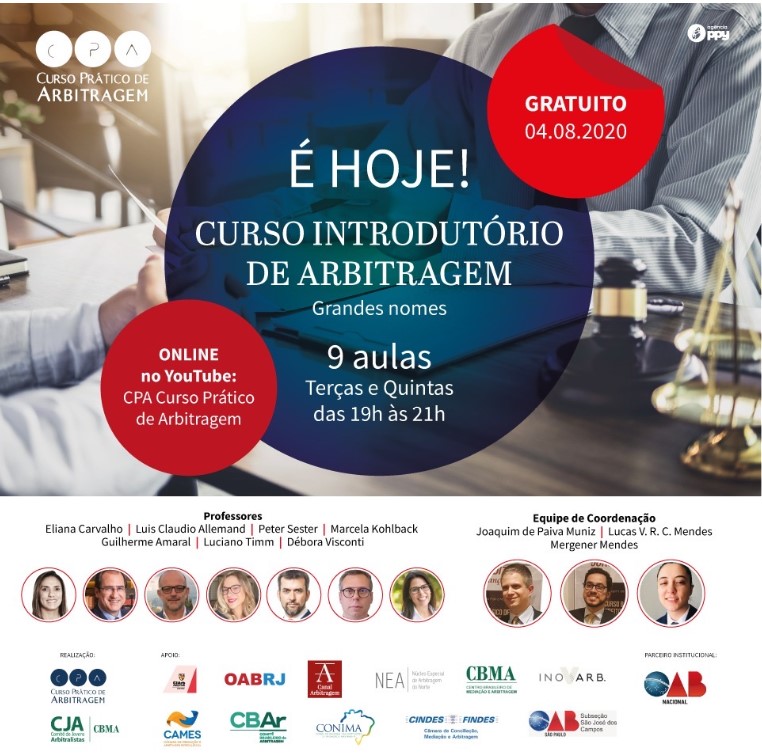 Hoje, às 19h, acontece a última aula do "Curso Prático de Arbitragem" (clique aqui), coordenado por Joaquim Muniz (Trench Rossi Watanabe), abordando temas como: arbitragem tributária, precedentes, intervenção de terceiros, jurisprudência internacional e law & economics (clique aqui). Para conferir à aula passada, sobre temas polêmicos de arbitragem como vieses inconscientes, impecuniosidade, financiamento de terceiros e mediação, clique aqui.