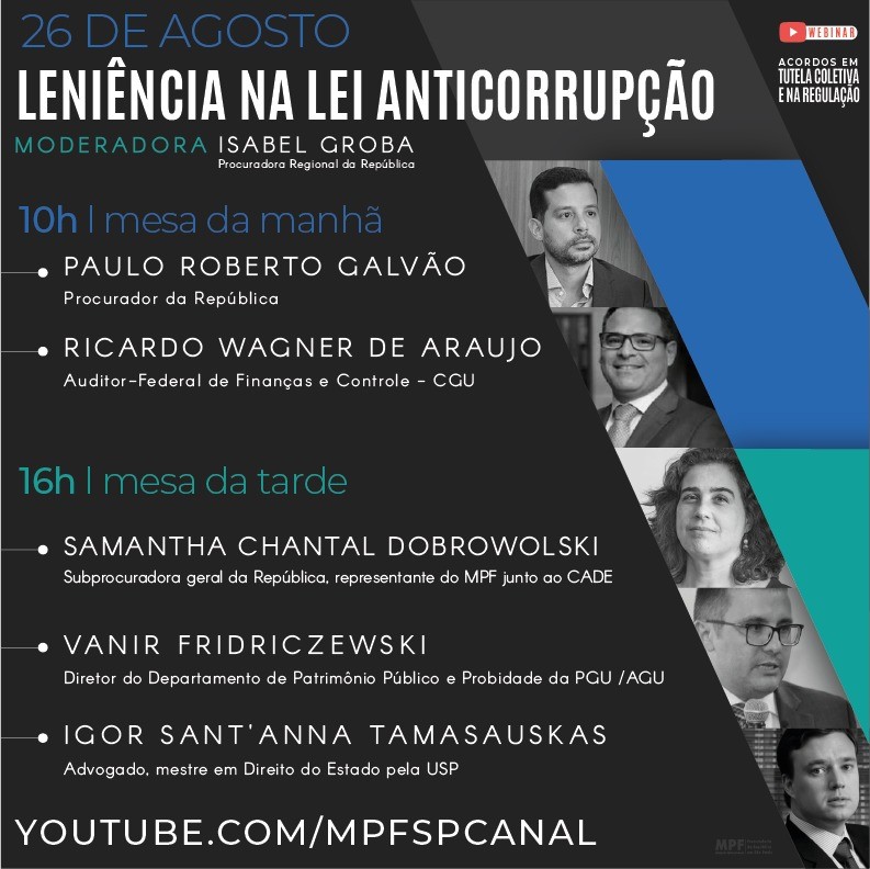 Igor Tamasauskas (Bottini & Tamasauskas Advogados) participa do webinar promovido pelo MPF/SP "Leniência na lei anticorrupção" (clique aqui). Dia 26/8, às 16h. (Clique aqui)