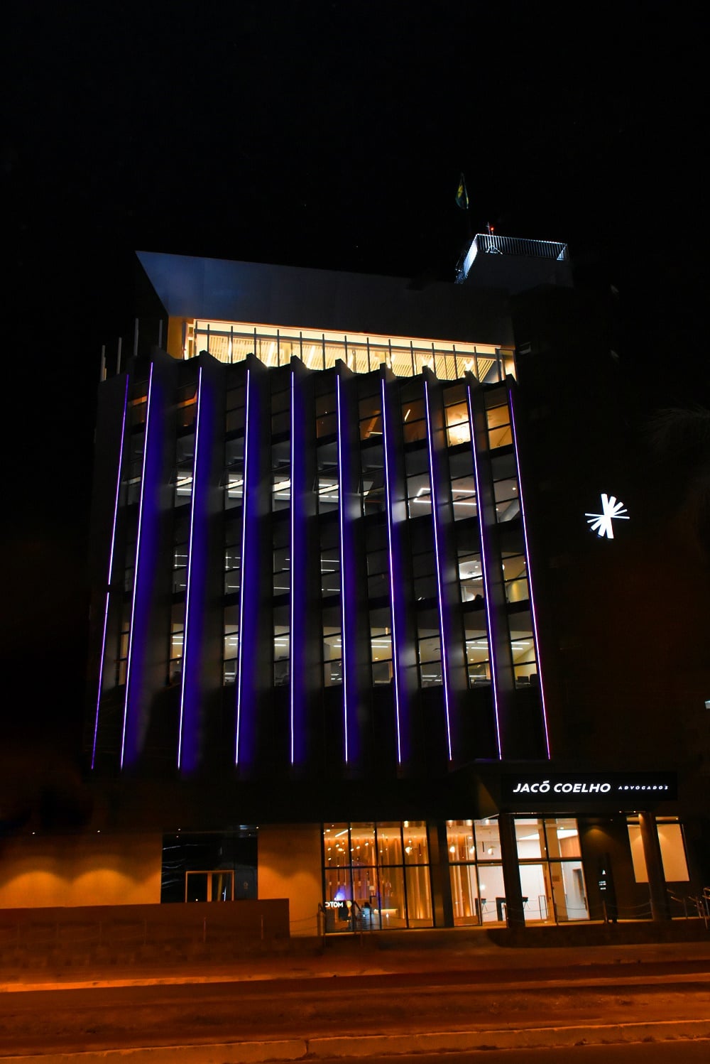Em alusão ao Agosto Lilás, Jacó Coelho Advogados passa o mês com a iluminação externa na cor da campanha em repúdio à violência contra a mulher. Confira a foto do prédio de 6 andares localizado em Goiânia. (Clique aqui)