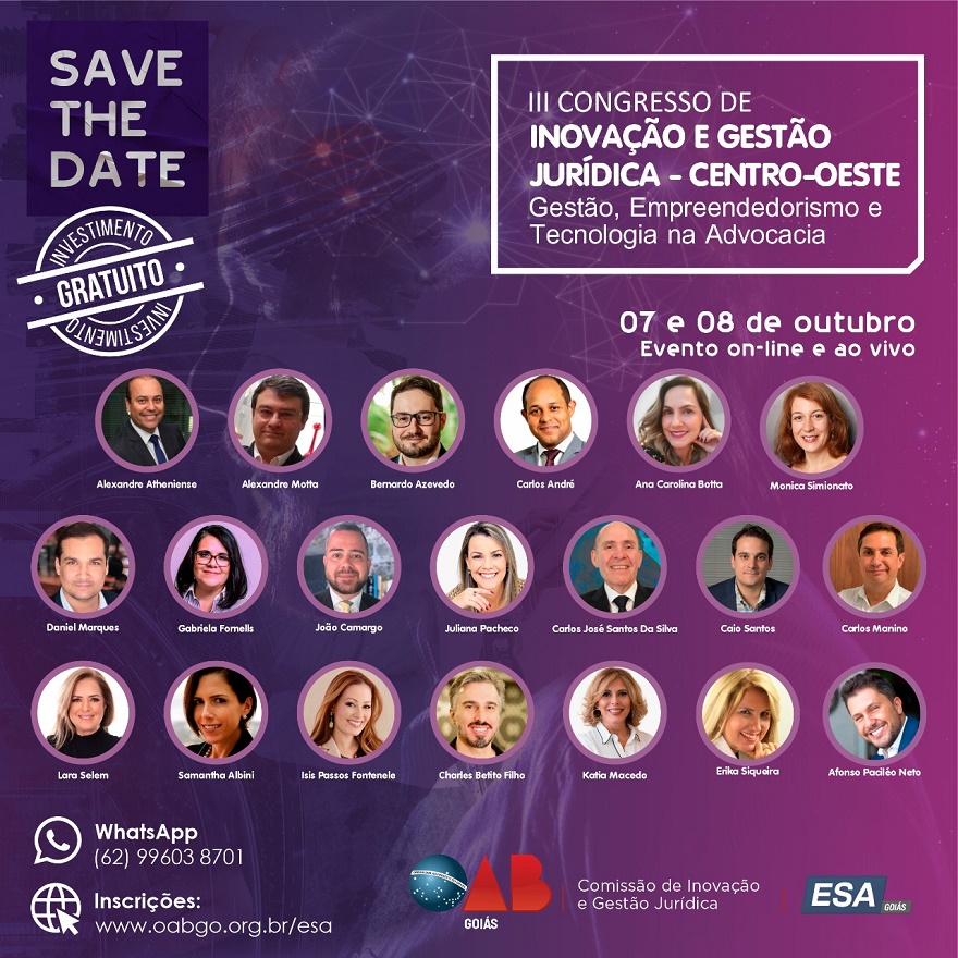 A OAB/GO promove o "3° Congresso de Inovação e Gestão Jurídica" (clique aqui) e conta com o consultor e sócio-diretor do Grupo Inrise, Alexandre Motta (clique aqui), que palestrará hoje sobre "Novas Estratégias e Novas Oportunidades de Marketing Jurídico com provimento 205/21" (clique aqui). (Clique aqui)