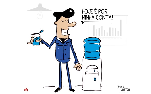 Ao contrário de outras empresas, as ações do grupo Migalhas foram às alturas ontem. As altas foram puxadas pelos resultados excelentes de janeiro, indicando que 2022 será um ano espetacular. Oxalá. Nosso amado Diretor comemorou os recordes oferecendo a todos um brinde com um profuso copo d'água.