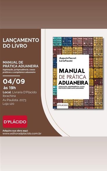 Acontece amanhã, na Livraria D'Plácido, em SP, o lançamento do livro "Manual de Prática Aduaneira - Legislação, Jurisprudência, Casos Práticos e Compliance Aduaneiro", de Augusto Fauvel e Lúria Fassini. (Clique aqui)