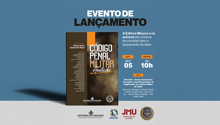 Editora Mizuno promove no dia 5/12, em Brasília, o evento lançamento do livro "Código Penal Militar Anotado". (Clique aqui)
