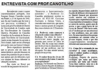 Jornal do Centro Acadêmico "22 de Agosto" da PUC/SP publica entrevista com o eminente jurista português Professor Canotilho