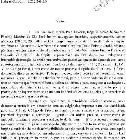 Caso Isabella - TJ/SP mantém prisão preventiva de Alexandre Nardoni e Anna Carolina Jatobá