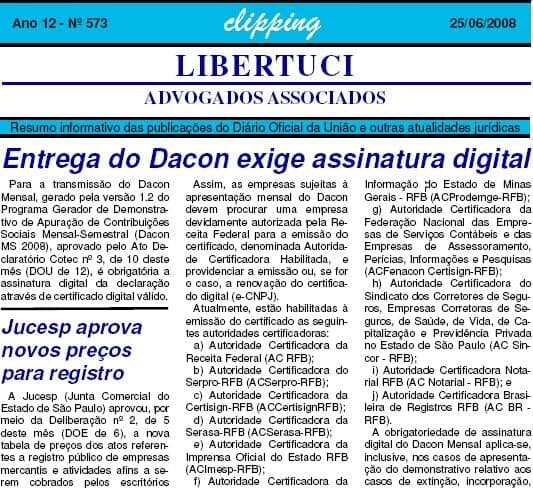Clipping semanal elaborado pelo escritório Libertuci - Advogados Associados