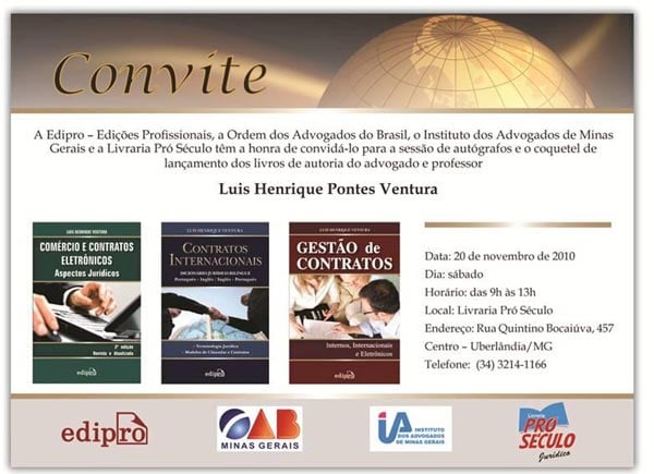 Lançamento das obras "Comércio e Contratos Eletrônicos - Aspectos Jurídicos", "Contratos Internacionais" e "Gestão de Contratos"